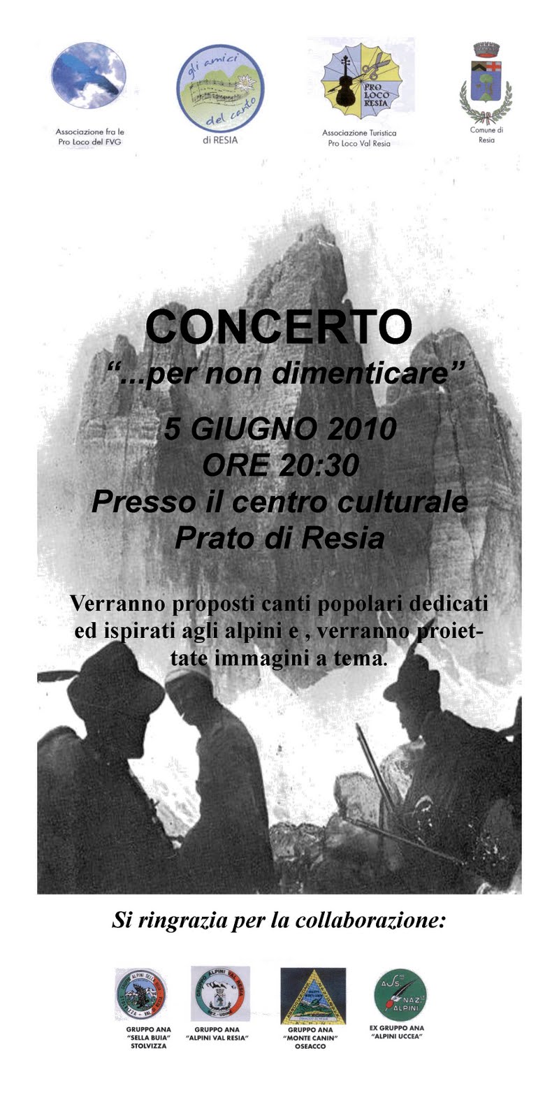 Realtà sbocciata nel già ricco e fiorente panorama musicale della Val Resia, il coro “Amici del canto” è un gruppo maschile nato nel dicembre del 2007 quasi “per gioco” e senza tante pretese, su iniziativa di un affiatato gruppetto di giovani. Nel corso dei primi nove anni di vita il gruppo ha partecipato ad una sessantina di concerti. I componenti sono di Resia, Resiutta e Tolmezzo. E’ diretto fin dagli inizi da Gianluca Paletti.